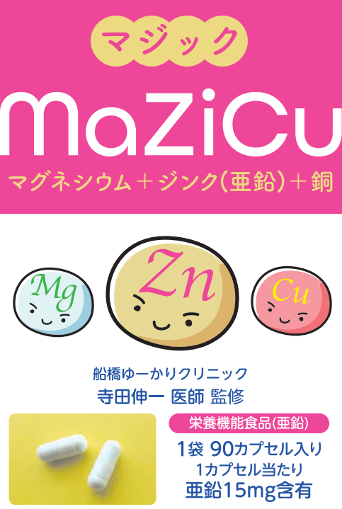 2023年6月より医療機関向け亜鉛サプリメントMaZiCuを卸売開始しました。生体内での多機能性が数々報告されてる亜鉛と銅のほかに、マグネシウムを含有し、胃腸の働きを助けます。一般販売は行っておりません。